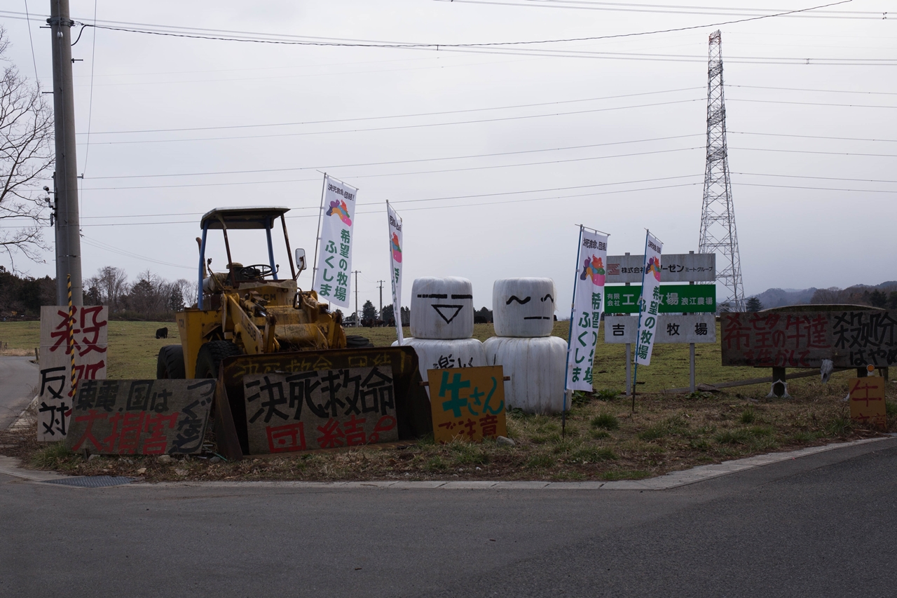 毎回訪問している吉沢牧場(非営利一般社団法人 「希望の牧場・ふくしま」)に着く。残念ながら吉沢さんは出張中で会えなかったた。(15:00撮影) |