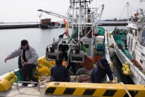 漁の準備をする漁師さんたち。話しかけても口は重かったが、写真は「どうぞ」といってくれた。昨年よりも漁師さんの姿は多く見られ。本格操業に向けてはこれからが正念場のようだ。