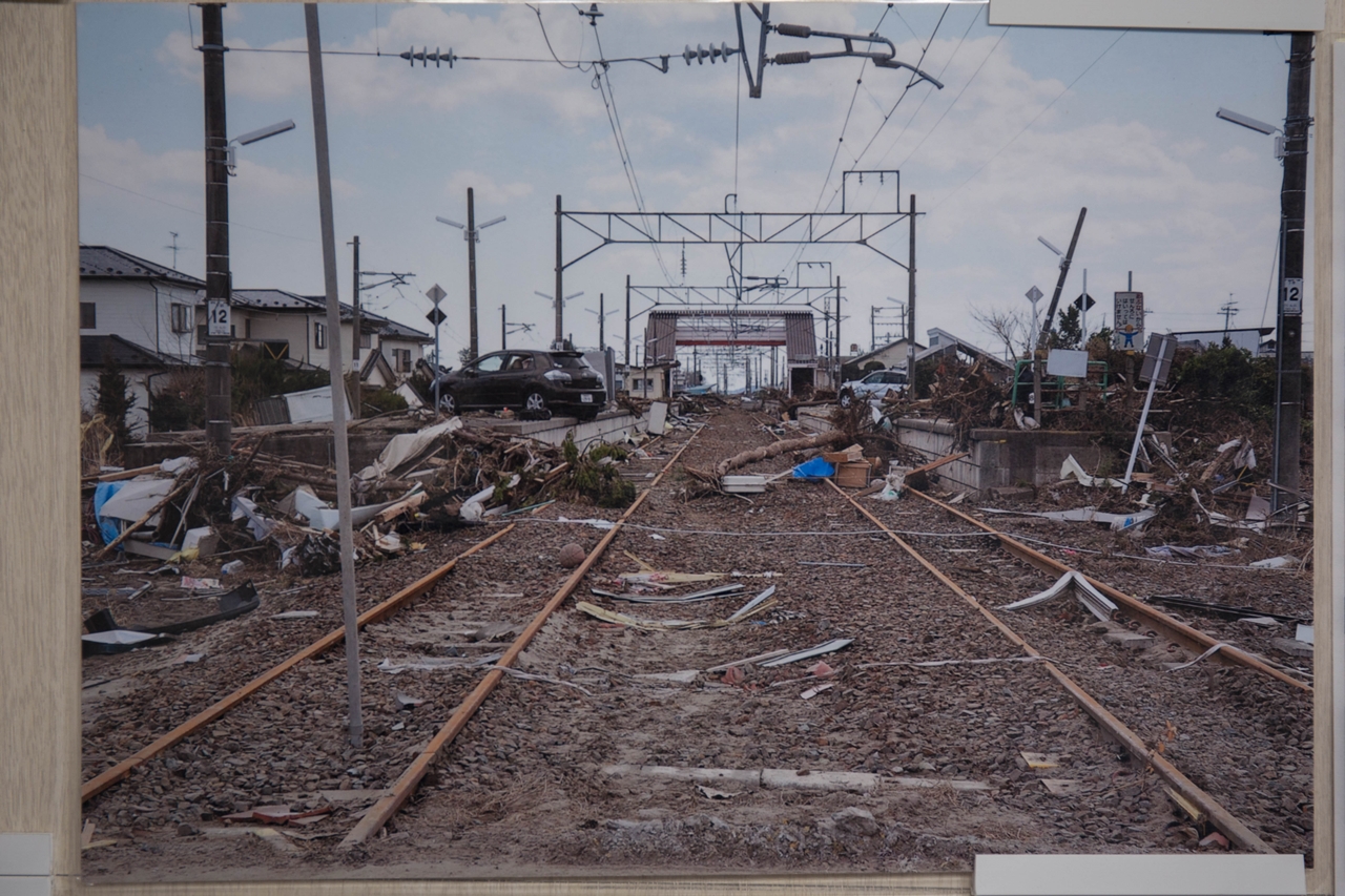 被災直後の駅の様子。橋元商店に展示してあった写真から。 |
