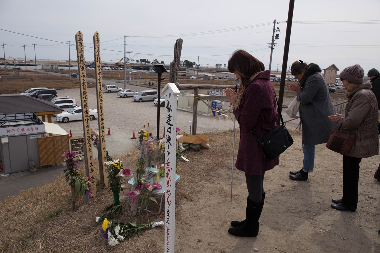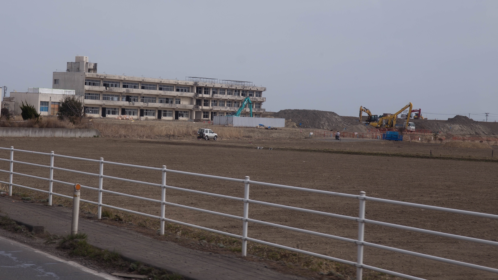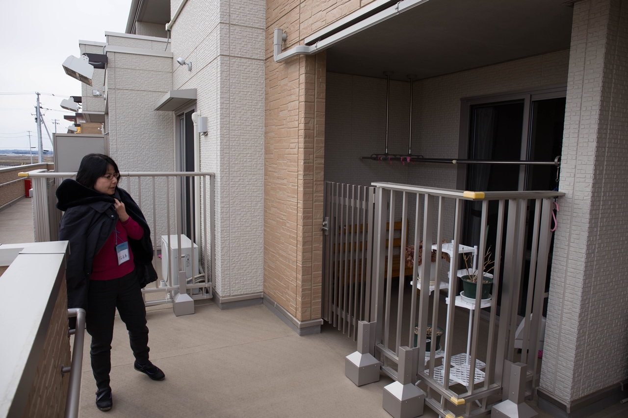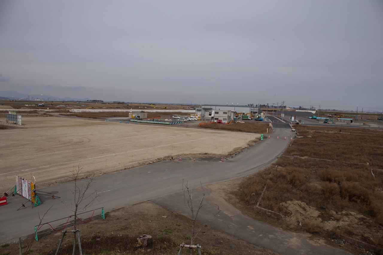 山元町では約2500世帯が被災し、町は被災世帯に対して内陸の3か所に整備する新市街地に移転することを促している。笹野地区は、災害危険区域で新築は禁止されているが、被災家屋を補修して住むことは認められた。そうして現地再建した15戸が海側に取り残されようとしている。さらに、新しい県道ルートには補修した住宅が数軒あり立ち退きを迫られている。 |