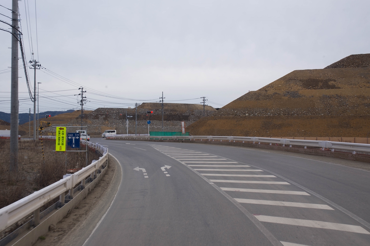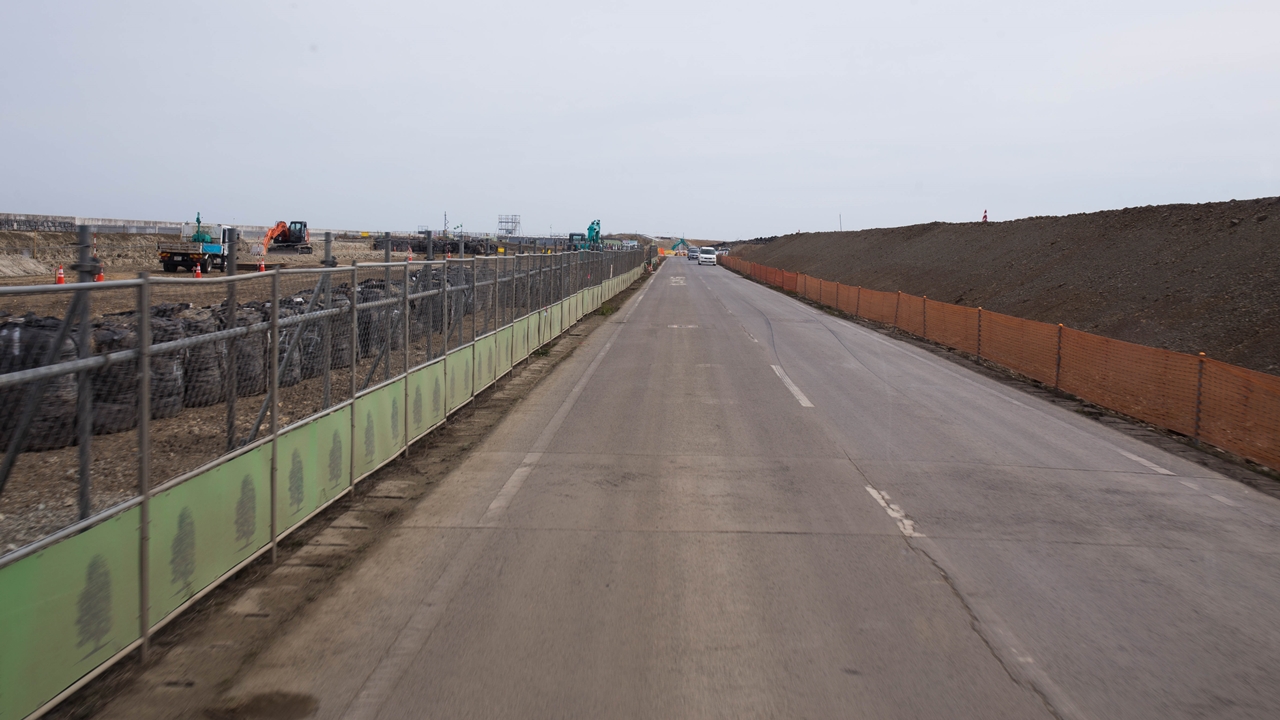さらにバスは6号線を北上する。宮城県東南端の亘理郡山元町では新JR坂元駅の建設工事を車中から視察。線路を高架にした上陸側に移動しての復旧工事はかなり進んでいるようだ。JR東日本