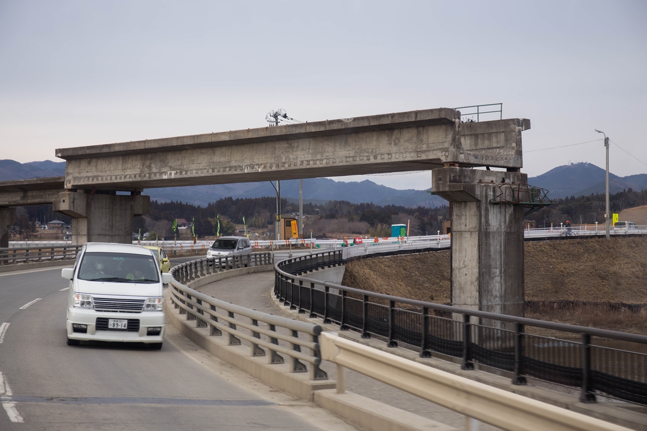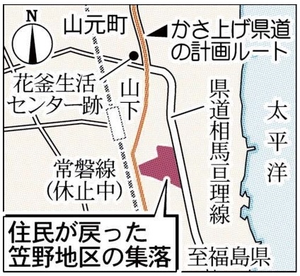 山元町では、沿岸部を走る県道を最大で500メートル内陸に移設。4~5メートルかさ上げして防潮堤の役割をもたせる計画だが、海側に取り残される住民が県道ルートの変更などを求めている。