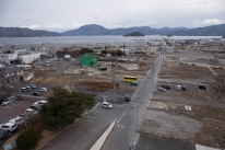 ホテルから観た陸前高田市の様子。海岸側は重機で整備された広大な更地になっている。(6:20撮影)