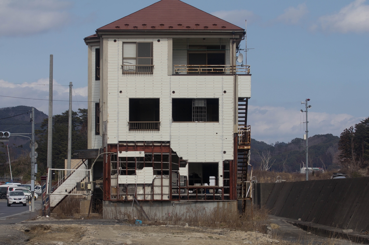 海岸から200メートルほど内陸に建つが最上階(5階)の床上まで浸水した。 |