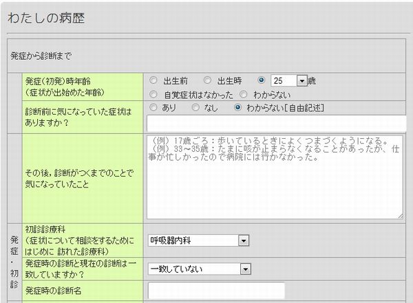 発症から診断までの出来事や、診断から現在に至るまでの状況を記入する項目です。